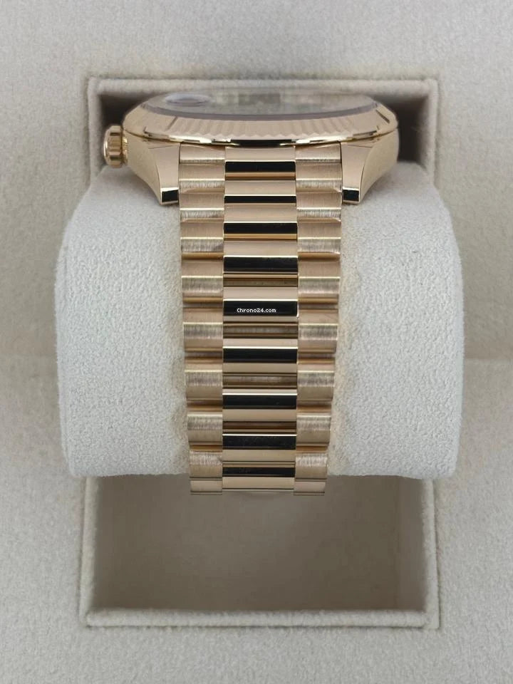 Includes the following: ️Original Rolex Double boxed ️Box and Papers - Yes ️Warranty card dated 2025 ️5 year manufacturer warranty ️Manual and Warranty booklets ️Green and White Hang Tags included ️Material: 18kt Yellow Gold ️Size: 7.5inch wrist (Full Links) ️Watch is Brand New/Unworn |